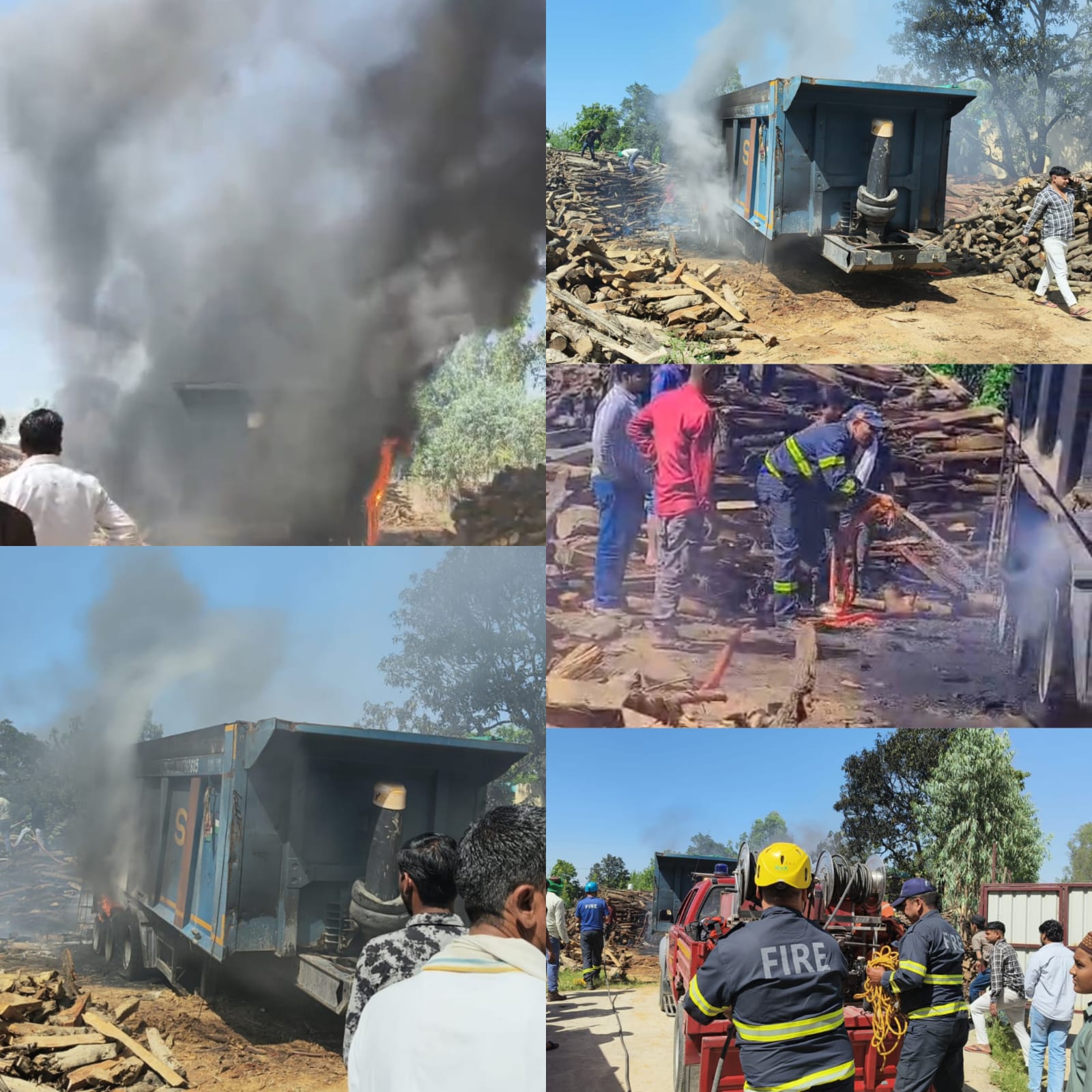 शॉर्ट सर्किट से ट्रक में लगी भीषण आग, टायर जलकर राख- लाखों के नुकसान की आशंका- बड़ा हादसा टला..