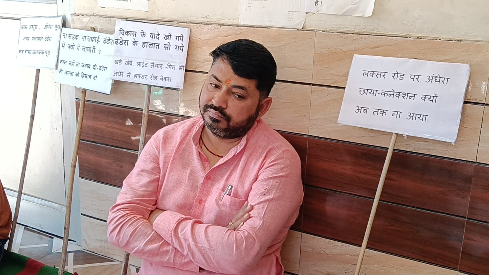 ढंडेरा नगर पंचायत कार्यालय में धरने पर बैठे पूर्व भाजपा मंडल अध्यक्ष रवि राणा, विकास कार्यों में लापरवाही का आरोप...
