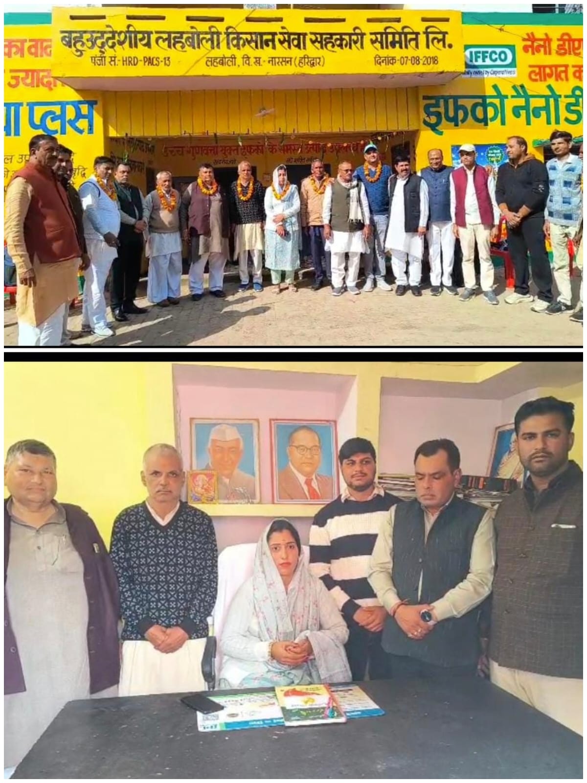 लहबोली बहुउद्देशीय किसान सेवा सहकारी समिति में नवनिर्वाचित सभापति विभा चौधरी ने संभाला कार्यभार..