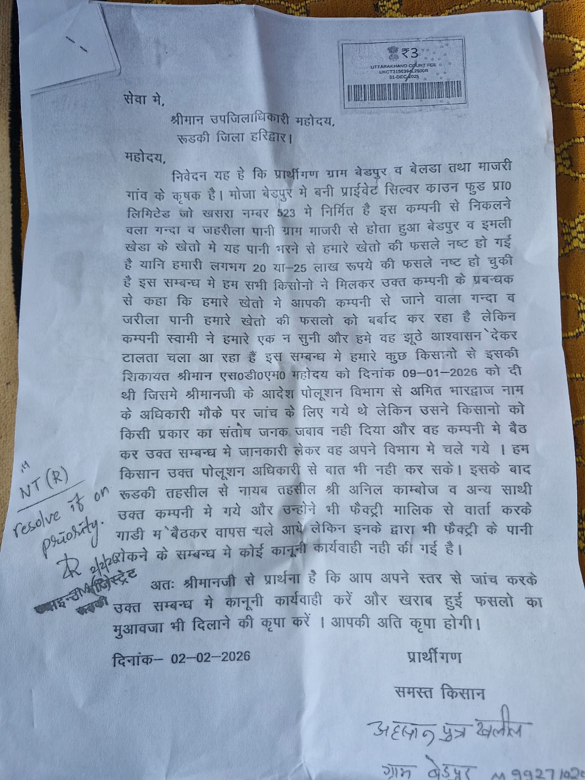 कंपनी के जहरीले पानी से फसलें तबाह, बेडपुर के किसानों ने ज्वाइंट मजिस्ट्रेट से की कार्रवाई की मांग...