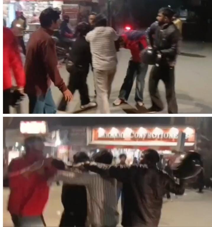 घटना शनिवार रात की है जब रामनगर में शिव चौक पर युवकों के दो गुट आपस में भिड़ गए। वायरल हो रहे वीडियो में साफ देखा जा सकता है कि दबंग युवक एक शख्स के सिर पर हेलमेट से ताबड़तोड़ वार कर रहे हैं। इसके साथ ही दोनों पक्षों में जमकर लात घुसे और बेल्ट भी चली। इतना ही नहीं युवकों ने पास पड़े डंडों को भी उठाकर एक दूसरे पर हमला किया। झगड़ा इतना भीषण था कि आसपास खड़े लोग भी सहम गए।