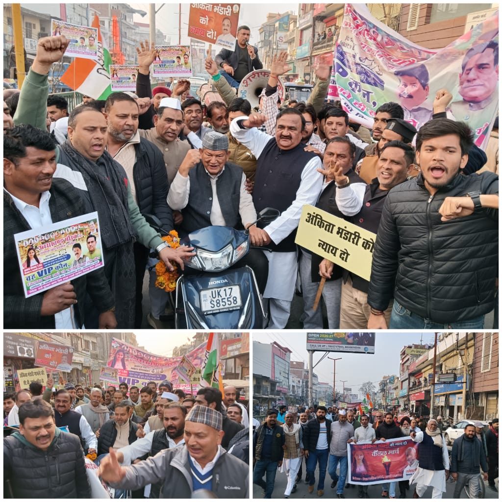 गढ़वाल सभा से शुरू हुई पदयात्रा आजाद नगर चौक होते हुए बीएसएम तिराहा पहुंची। हाथों में पोस्टर लेकर लोगों ने जमकर नारेबाजी की। पूर्व मुख्यमंत्री हरीश रावत ने कहा एक तरफ पूरा उत्तराखंड है जो अंकिता के लिए न्याय की मांग कर रहा है लेकिन दूसरी ओर सरकार अपनी हठधर्मिता पर उतारू है और आरोपियों को बचाने के लिए कवच बनकर खड़ी है।