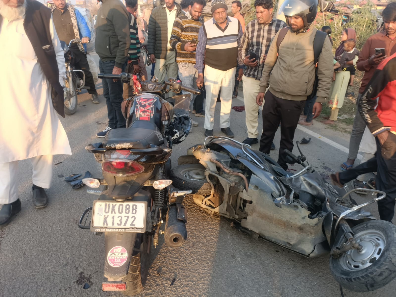 पिरान कलियर। कांवड़ पटरी मार्ग पर बाइक और स्कूटी की आमने-सामने टक्कर में दो लोग घायल हो गए। सूचना मिलते ही पुलिस मौके पर पहुंची और घायलों को तत्काल अस्पताल भिजवाया। गंभीर रूप से घायल व्यक्ति को बेहतर उपचार के लिए सिविल अस्पताल रुड़की रेफर किया गया है।